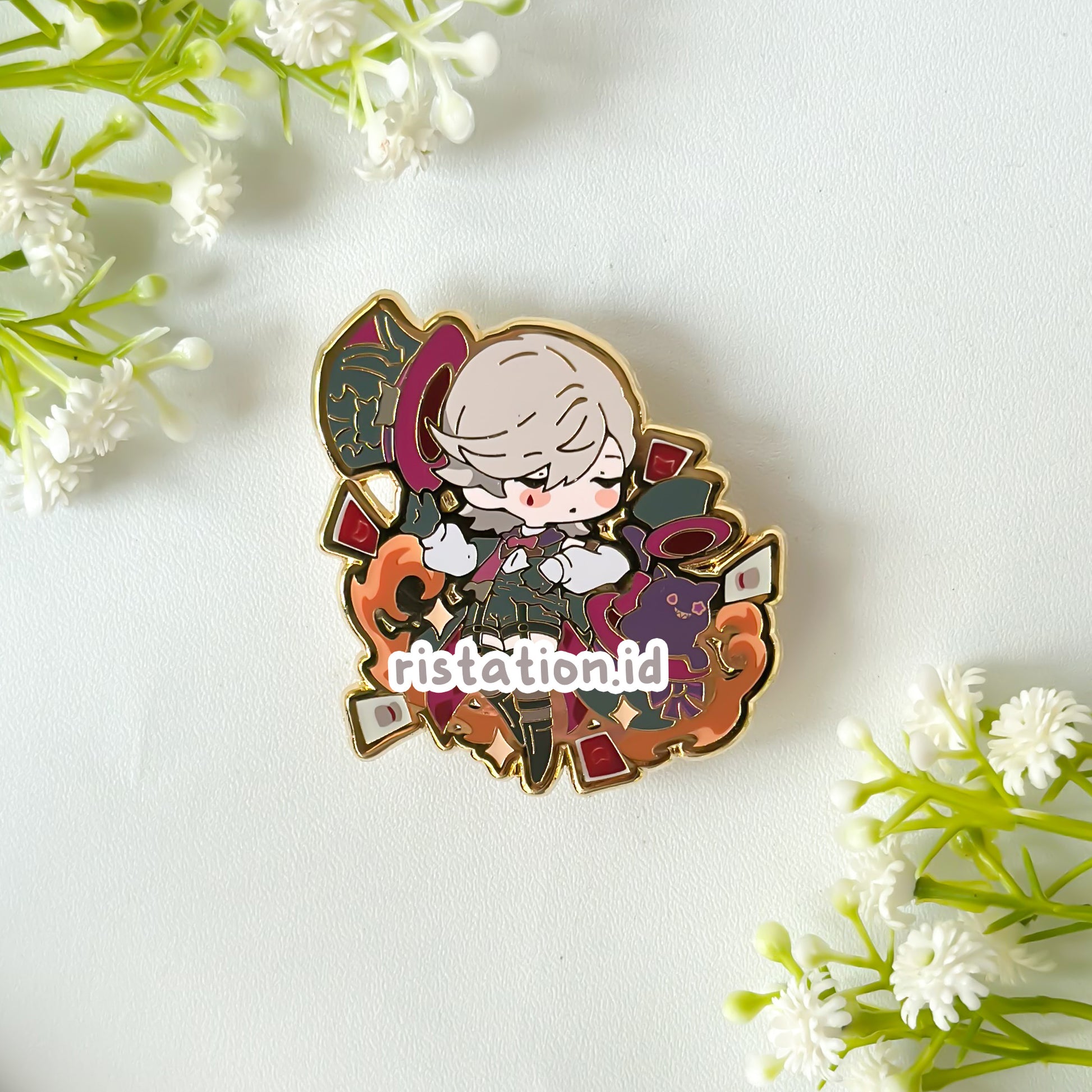Lyney from Genshin Impact - Glow in the Dark Hard Enamel Pin, unofficial merchandise designed by Rist Art.