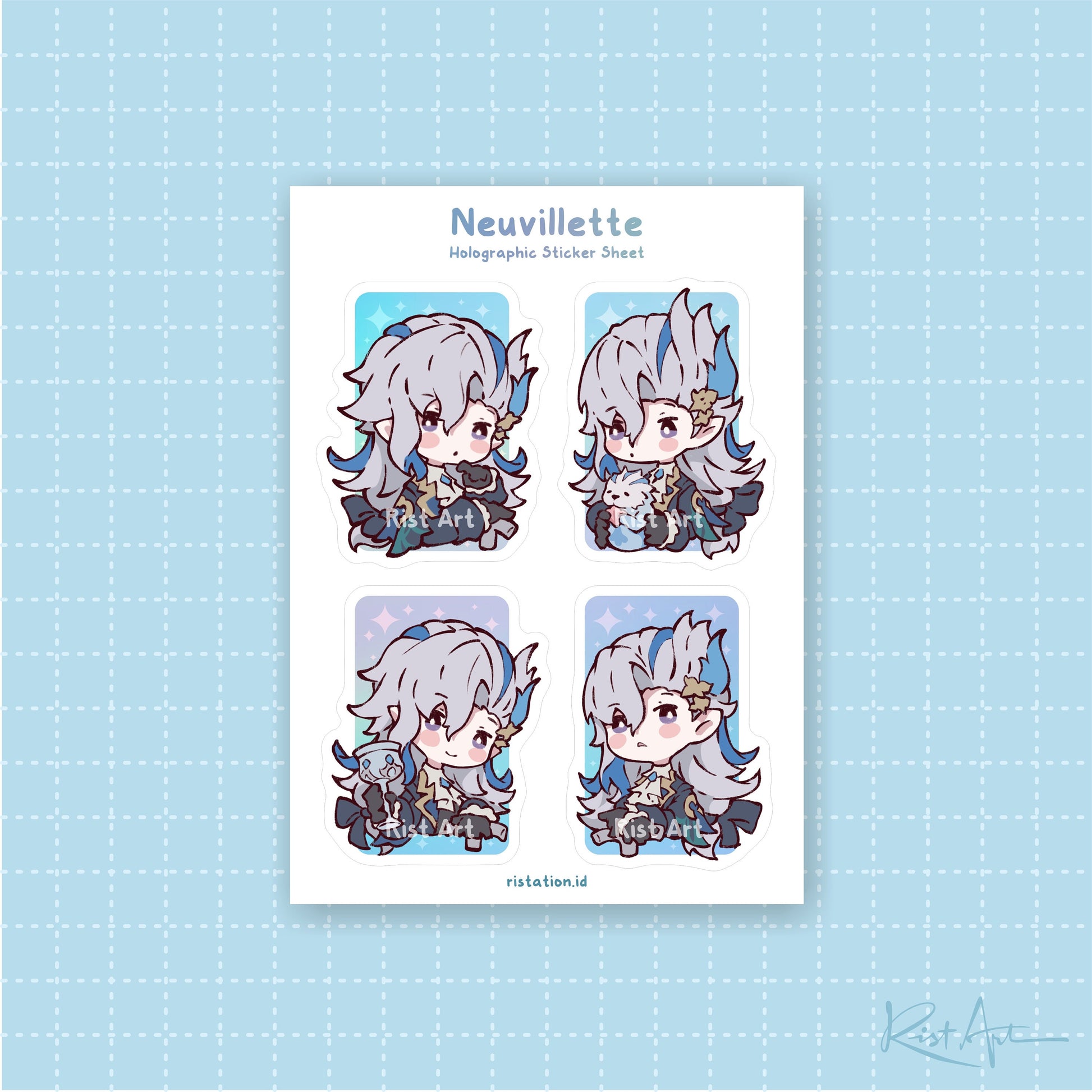 Genshin Impact Mini Holographic Sticker Sheet - Neuvillette - Journaling & Decoration Sticker